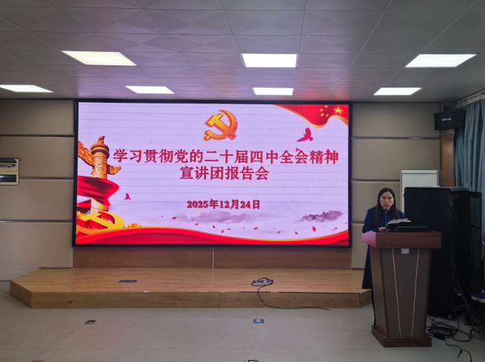 为深入学习贯彻党的二十届四中全会精神,全面准确领会党中央决策部署,12月24日下午,H视频 组织召开专题理论学习会,邀请学校党委理论宣讲团成员、马克思主义学院副院长孙淑秋教授作题为《以党的二十届四中全会精神为指引,开启“十五五”奋进新征程》的专题辅导报告。学院全体党员100余人参加学习,会议由学院党委书记刘利群主持。