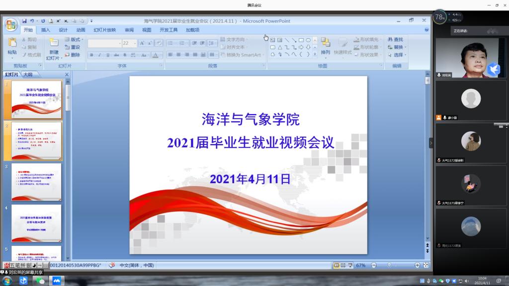 在腾讯会议室召开2021届毕业生就业动员视频大会,部分院(系)领导、全体辅导员、全体毕业班班主任以及2021届全体毕业生参加会议,会议由学院党委副书记刘宏英主持。