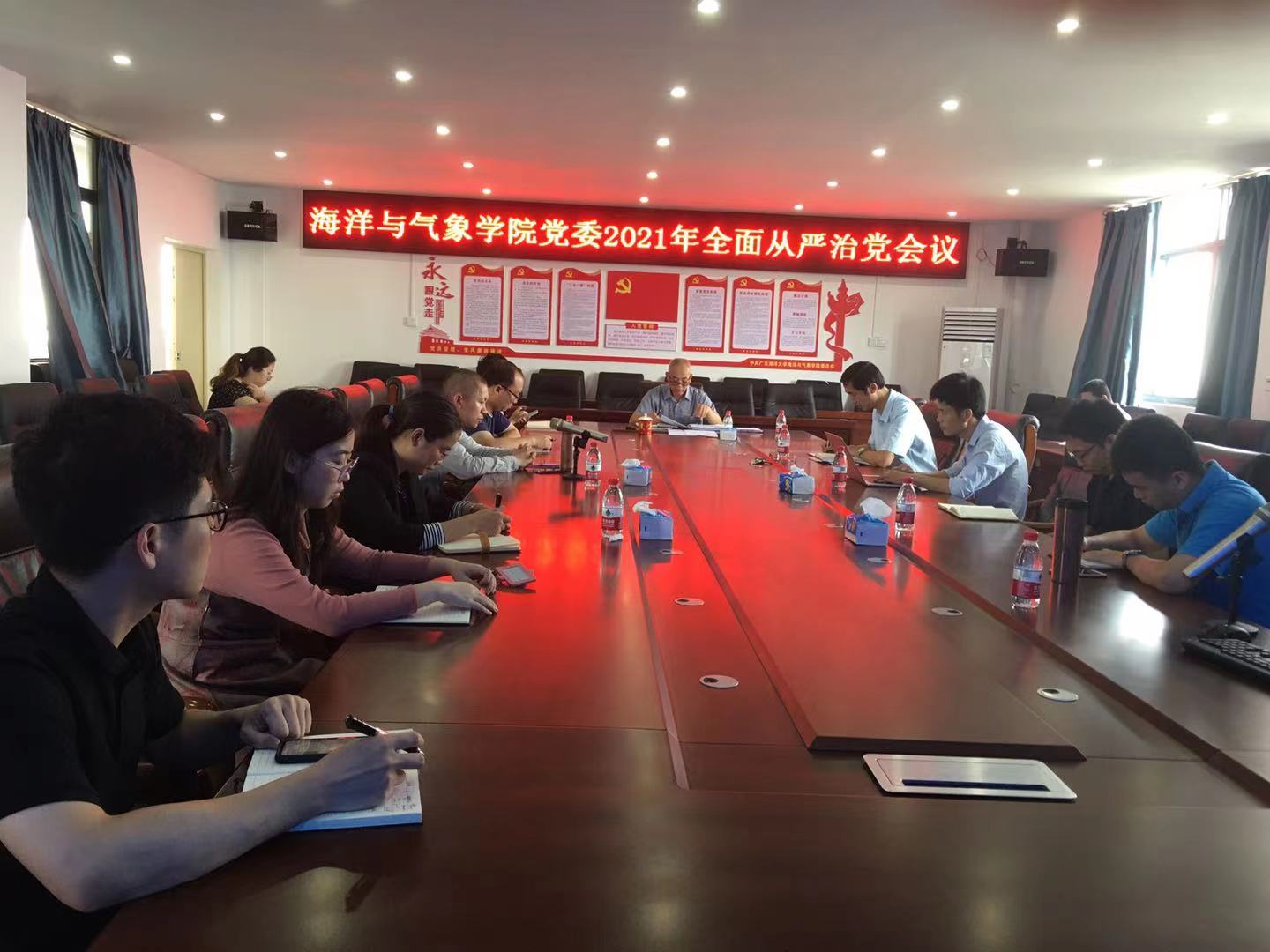 党委2021年全面从严治党工作会议在湖光校区海科楼505会议室召开,学院领导、党委委员、纪委委员、组织员、党支部书记、团委书记、全体副科(含相当)及以上干部参加,学院党委书记陈晓主持会议。