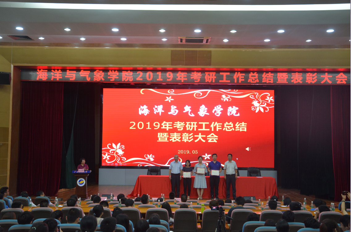 关于表彰2019年考研优秀指导教师和考研优秀学生的决定》;学院领导、系主任为获奖的考研优秀指导教师、考研优秀学生颁奖。考研优秀指导教师代表梁梅、王双玲以及考研优秀学生代表欧立健、韩雪作了考研经验交流发言。