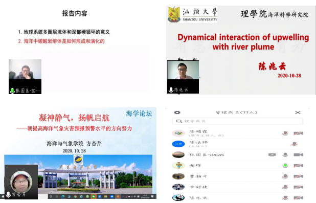 举行了第十期海学论坛,这次论坛有幸邀请到了中国科学院海洋研究所研究员、国家优青张国良老师以及汕头大学海洋科学研究院的陈兆云教授,同时和H视频
