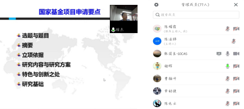 邀请了中国科学院南海海洋研究所徐杰研究员开展线上会议,作题为“国家自然科学基金申请的一些体会”报告。会议由陈法锦副院长主持,学院数十名教师认真听取了徐杰研究员的精彩报告。