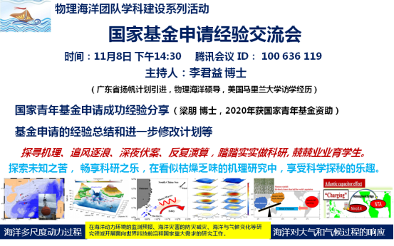 物理海洋学科团队召开“国家基金申请经验交流会”。会议由李君益老师主持,H视频
