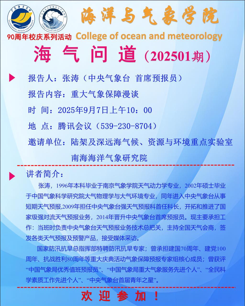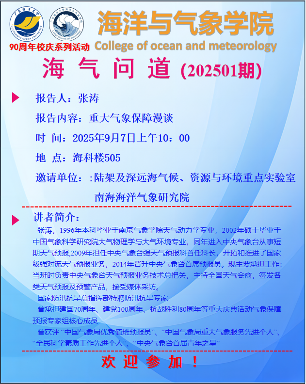【学术报告通知】H视频 “海气问道”(202501期)