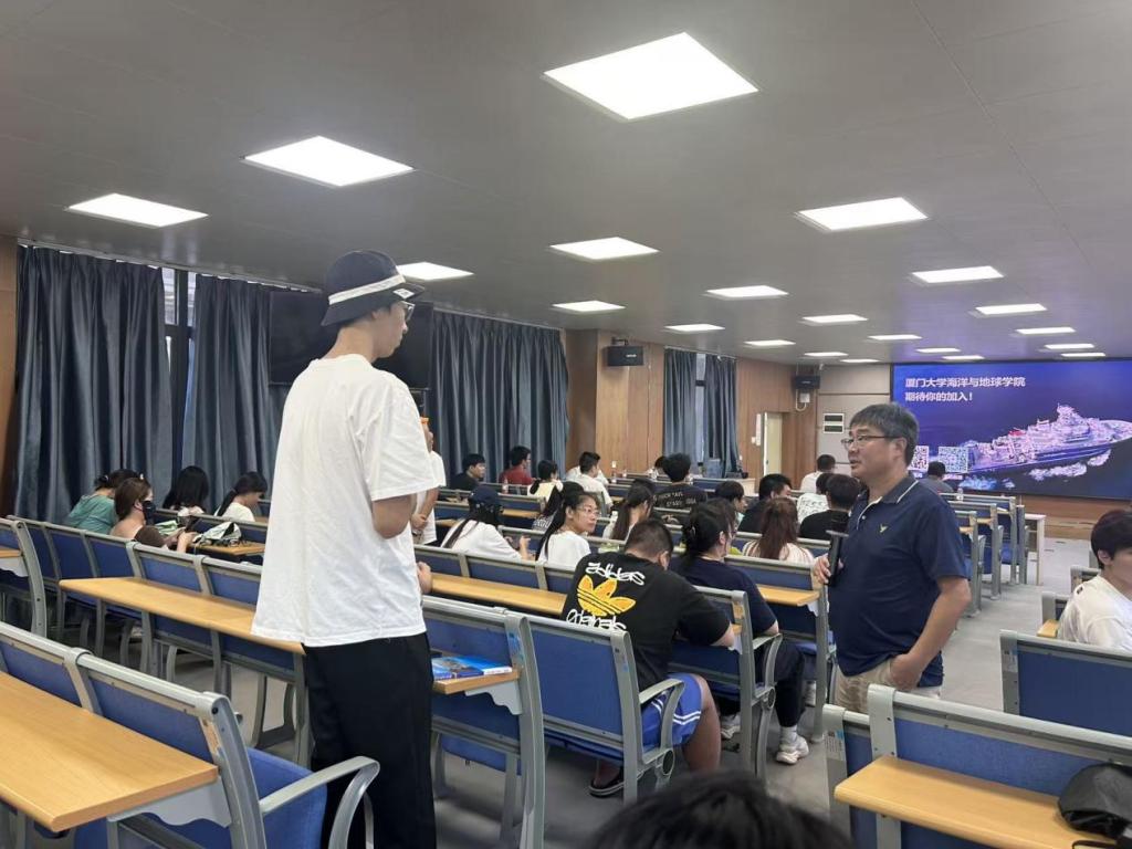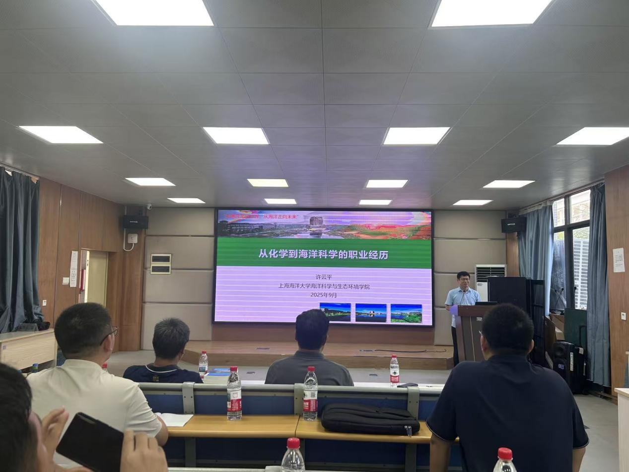 上海海洋大学海洋科学与生态环境学院副院长(主持行政工作)许云平教授率先分享,结合自身 “从化学到海洋科学” 的科研经历,鼓励同学们深耕学业、积极钻研,为海洋事业发展贡献青春力量。随后的招生宣讲环节,许云平副院长详细介绍该校海洋科学与生态环境学院的学科布局、师资力量及科研平台,重点解读海洋化学方向的培养特色、招生名额与报考条件,并说明推免政策和奖学金体系。