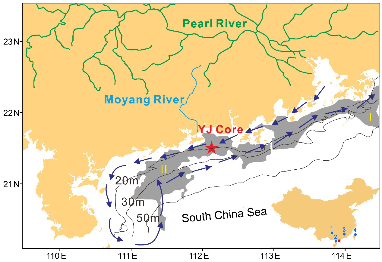 南海是连接欧亚大陆与太平洋最大的边缘海,同时南海也是东亚季风区最主要的水汽来源。南海北部海域沉积物主要由大陆经过各种途径搬运而来的陆壳风化产物和海洋自生钙质壳体组成,蕴含丰富的大陆气候变化和海洋水文环境的信息。因此,高速沉积的南海北部海域成为高分辨率古气候学研究的重要载体。环境磁学具有稳定性且磁学参数测定快速和无破坏性,使得环境磁学方法已广泛应用于古气候环境重建,尤其是近些年来,利用磁学参数反映的磁性矿物类型、磁性矿物含量和粒度等研究海洋沉积物所记录的过去气候环境变化信息。然而已开展的研究工作主要集中于远离大陆的深海环境,那么环境磁学方法是否能够应用于浅海相的近海沉积环境?首先需要正确认识近海沉积物岩石磁学性质,包括磁性矿物的来源、类型、粒度和含量等基本参数。