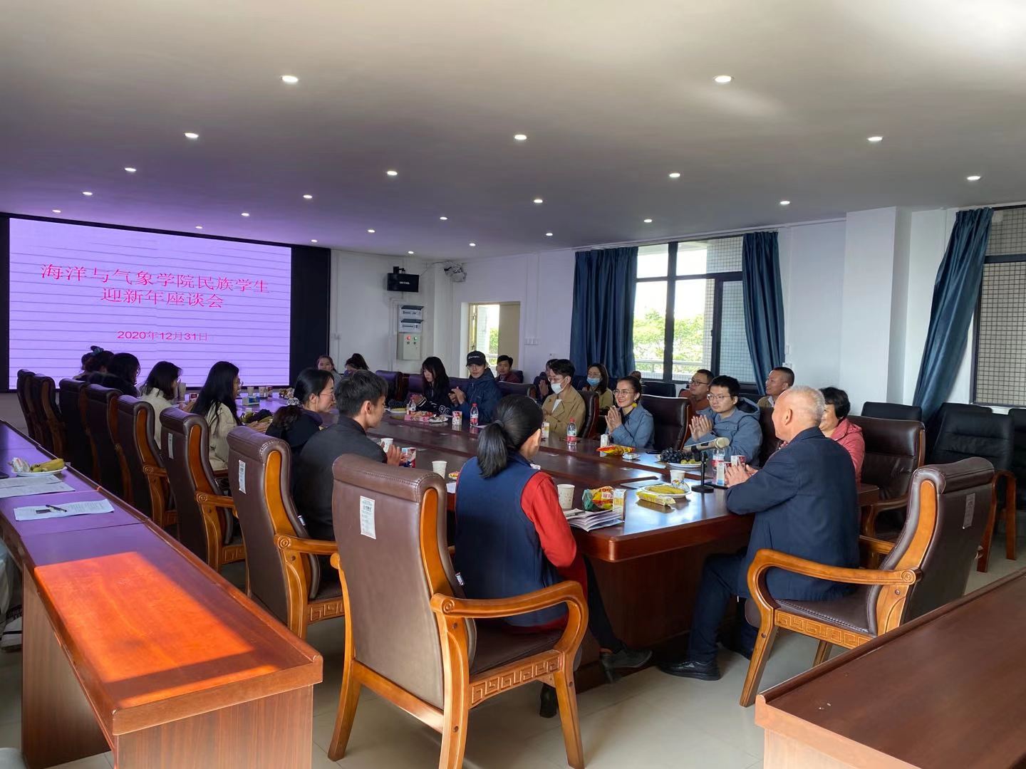 在海科楼505会议室召开了少数民族学生迎新年座谈会。学院党委书记陈晓,院长谢玲玲,副书记刘宏英,学生处老师谢米希开买尔、陈莉,全体辅导员、全体少数民族学生及其班主任参加了座谈会,本次座谈会由刘宏英主持。