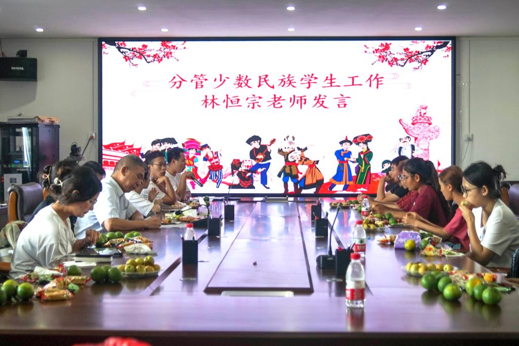 在海科楼505会议室召开少数民族学生座谈会。学院党委副书记胡森林、分管少数民族学生工作林恒宗老师、全体辅导员及少数民族学生共三十余人参加会议,会议由林恒宗老师主持。