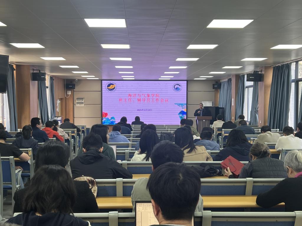 在海科楼107召开新学期学生工作会议。学院党委书记毛琪、副书记胡森林、班主任、辅导员和全体教职工参加。会议由胡森林主持。