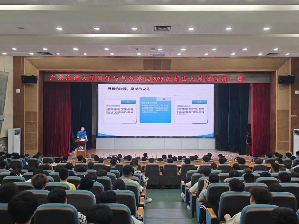 2025级新生及家长见面会暨入学教育第一课在湖光校区广学楼多功能厅隆重举行。学院领导、各系主任、辅导员、班主任以及来自全国各地的2025级新生与家长齐聚一堂,共同开启一段关于成长、梦想与责任的“蔚蓝旅程”,会议由党委副书记胡森林主持。