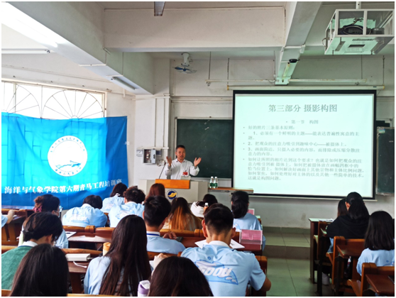 林海峰老师在主楼322为学院第六期青马班同学讲授了以“新闻摄影基本技巧”为主题的培训课。课堂开始,林海峰老师先以“习近平冒雨考察武汉新港”一图为切入点,带领同学们初步认识新闻摄影。接着再从以下四个方面开始分点为大家讲授相关知识。