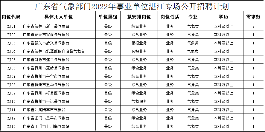 广东省气象部门2022年气象类本科及以上应届高校毕业生湛江专场公开招聘公告