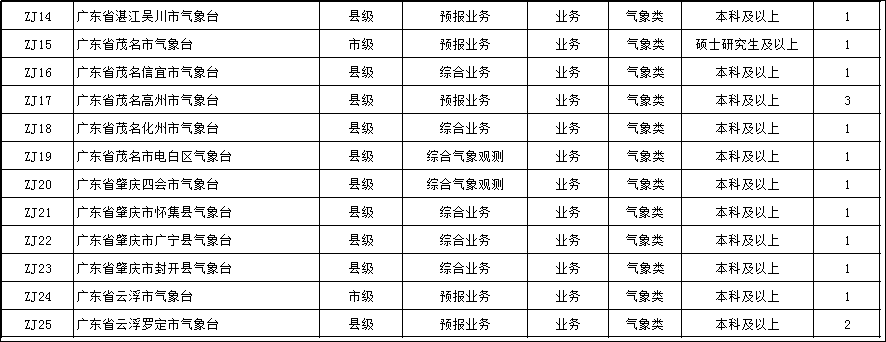其他岗位招聘请继续关注广东省气象局网