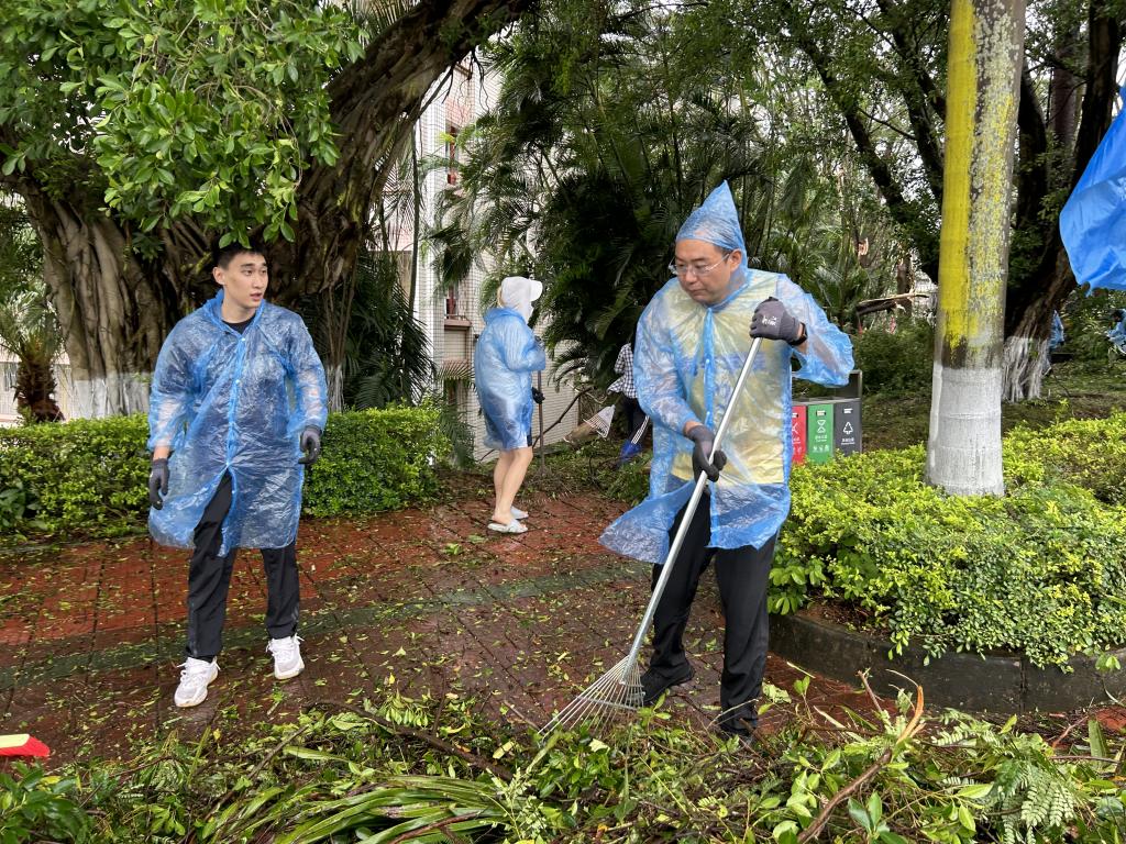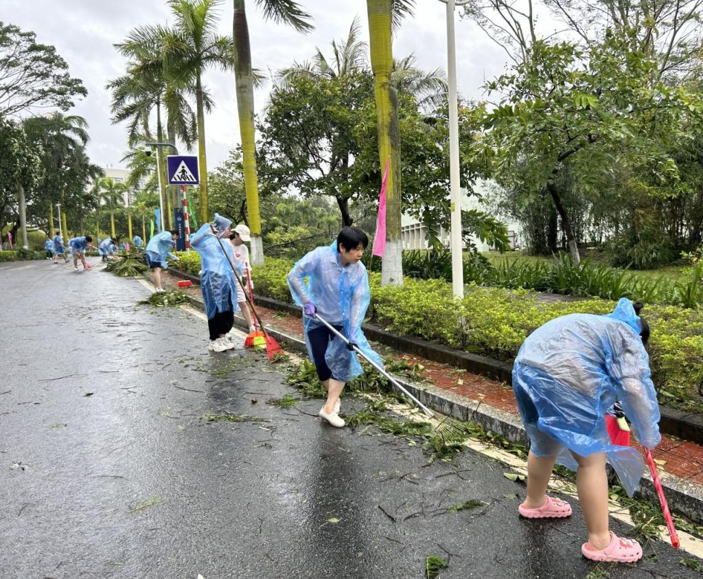 在学院党委书记毛琪、院长谢玲玲等领导班子成员带领下,各教学系、党支部、班级迅速组织起来,形成多个分工明确、协同作战的清洁小组,投入校园道路疏通、绿化带强险等工作中去。师生们无惧风雨,在学校分配的包干区域挥洒汗水,高效圆满完成了清理任务。