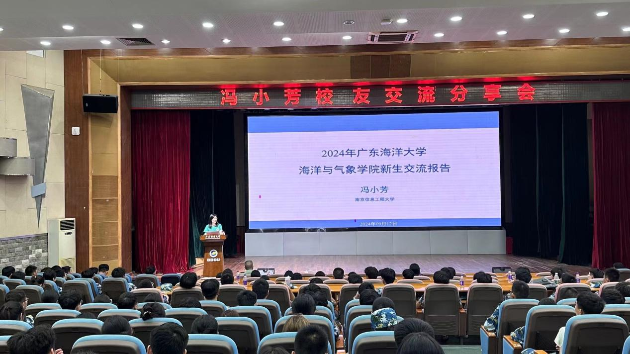 2014届大气科学专业冯小芳校友、2024级新生辅导员林恒宗老师及2024级全体本科新生参加活动,活动由学院党委副书记胡森林主持。