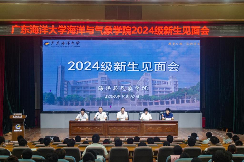 在湖光校区广学楼多功能厅举行2024级新生见面会暨入学教育第一课。学院党政领导、系正副主任、教师代表、全体辅导员、2024级新生班主任及2024级本科生、研究生共计360余人参加会议,会议由学院党委副书记胡森林主持。