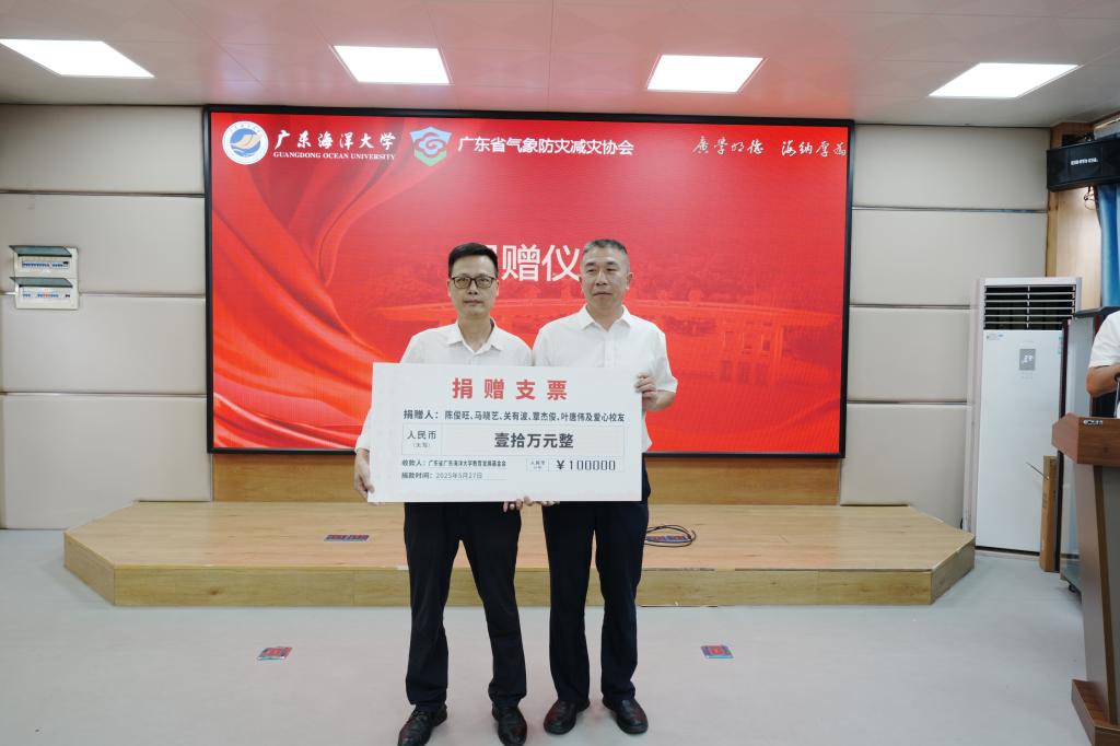 活动现场还举行了捐赠仪式,部分校友和社会企业慷慨解囊,为学校、学院建设和发展贡献力量。校友代表陈俊旺先生等人捐赠学校 10 万元,广州至远海洋科技有限公司捐赠手持测深仪(SM-5-5A)五套,总价值1.75万元。本次捐赠不仅为学院教学科研提供了有力支持,更彰显了海大人“感恩、奉献、传承”的精神品格。