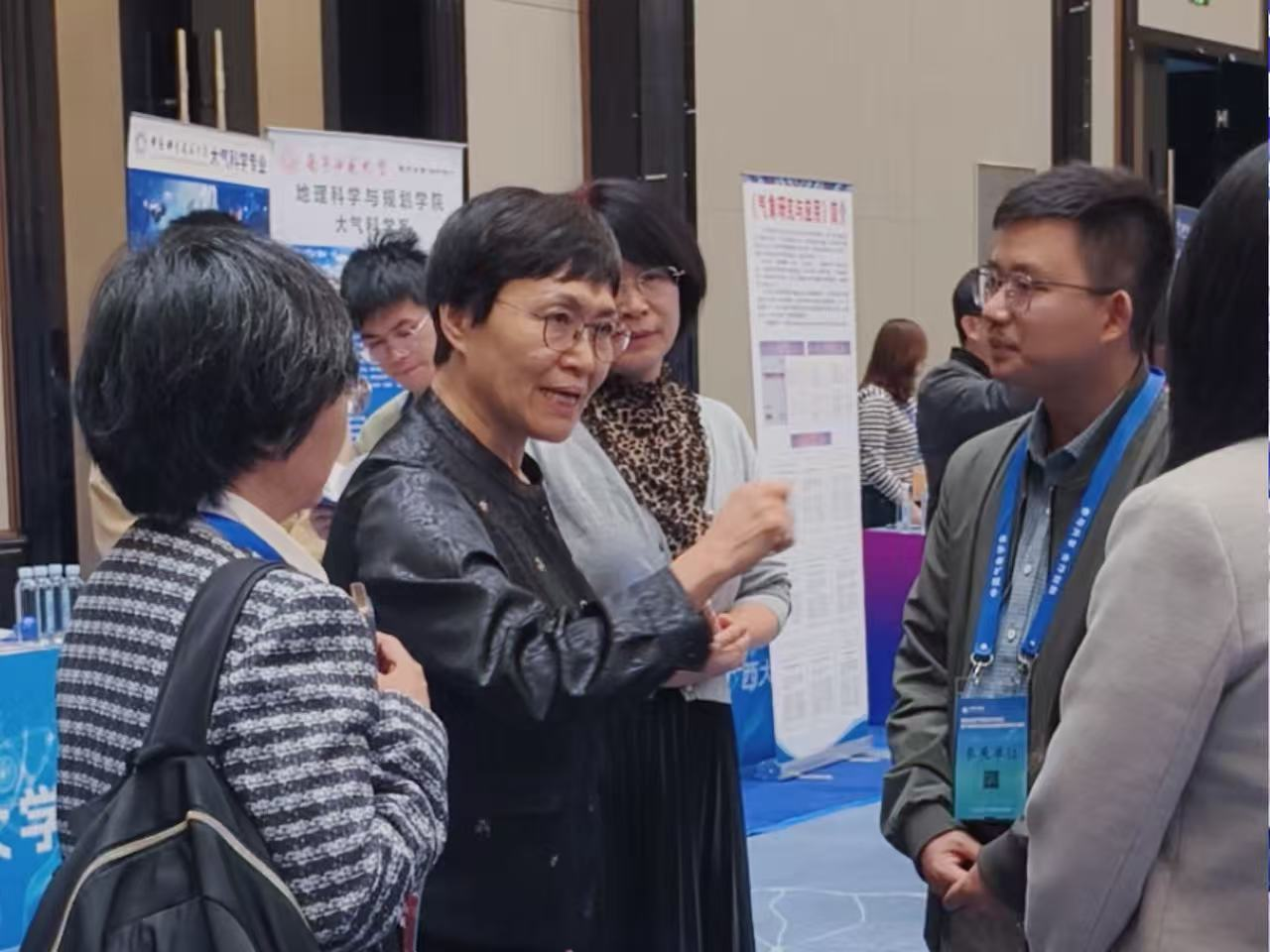 活动现场,中国气象局原副局长、中国气象学会副理事长矫梅燕莅临展位参观。龙景超老师和常舒捷老师向她详细介绍了学院本科与研究生人才培养情况、学位点建设进展,并汇报了学校积极推进气象专业博士点申报的相关工作。矫梅燕副理事长表示,学校从湛气校时期至今实现跨越式发展,成效显著,其应用创新型人才培养定位契合气象行业需求。她鼓励学校持续聚焦国家需求,为气象事业培育更多高级人才。同时,她希望学校积极参加学会活动、多向学会建言献策,学会将进一步完善活动形式,搭建更优质的交流平台。