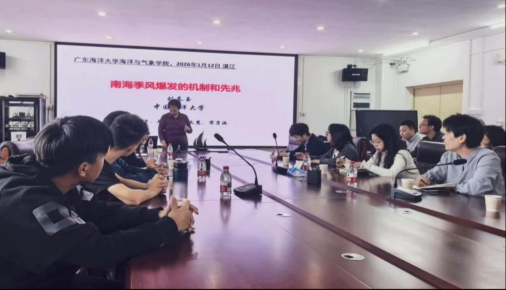 举行了2026年第2期海学讲堂。本期讲堂特邀中国海洋大学刘秦玉教授作了题为“南海季风爆发的机制与先兆”的学术报告。学院老师及40余名学生参加了此次活动。