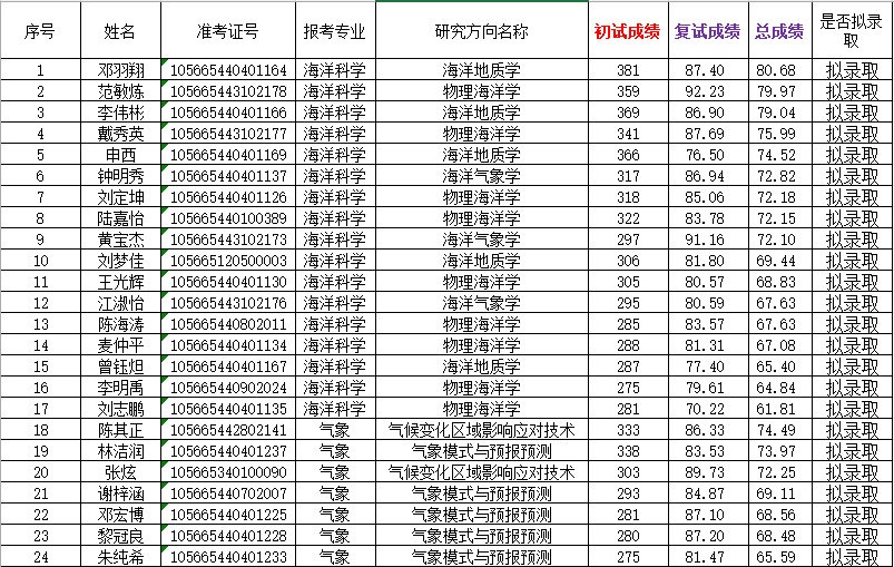 现将H视频 海洋科学专业2025年硕士研究生一志愿拟录取学生名单予以公示,公示期为7个工作日,即4月3日-4月9日。公示期内如对结果有异议,可以书面形式向学院予以提出。