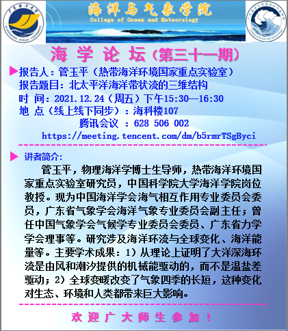 【学术会议通知】H视频 “海学论坛”(第三十一期)