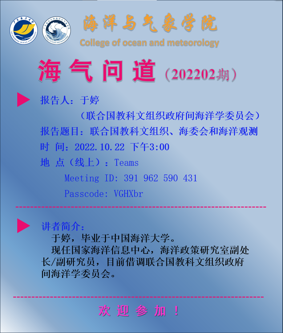 【学术会议通知】H视频 “海气问道”(202202期)