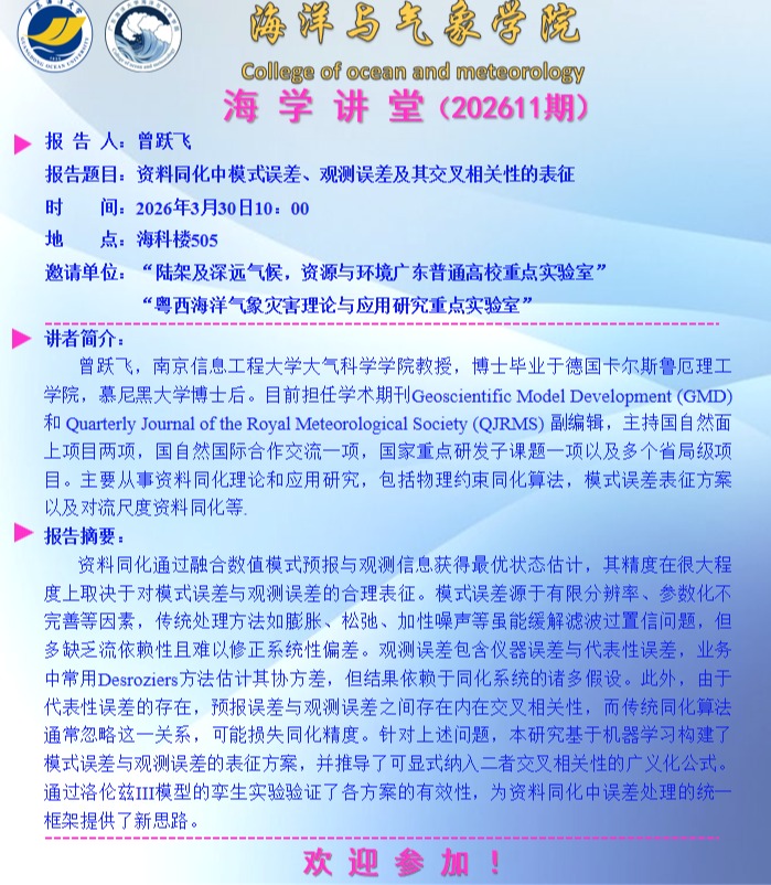 【学术会议通知】H视频 “海学讲堂”(202611期)