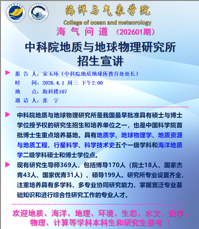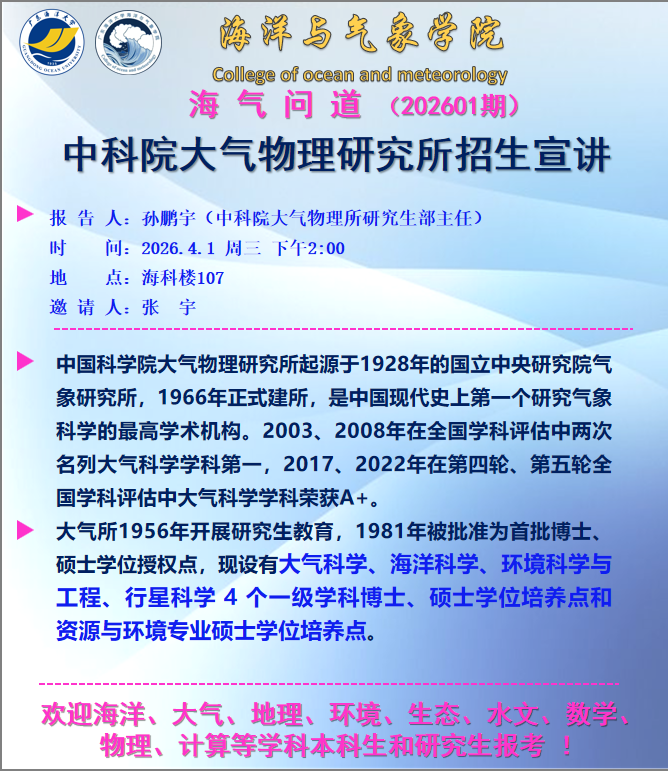 【学术会议通知】H视频 “海气问道”(202601期)