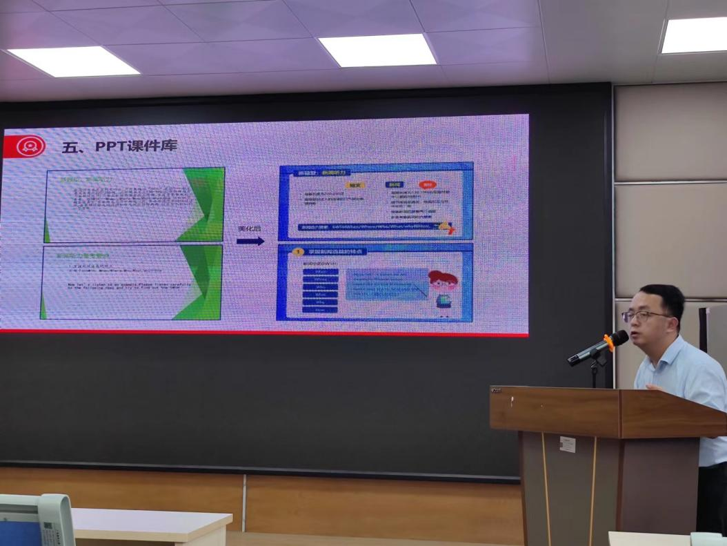 校外专家、广东力拓网络科技有限公司经理李育苗为大家分享了课程建设经验,展示了网络精品课程、微课视频、课程宣传片、移动微课件等课程资源的优秀案例,介绍了教学创新大赛、青年教师教学能力比赛等的申报经验及注意事项。