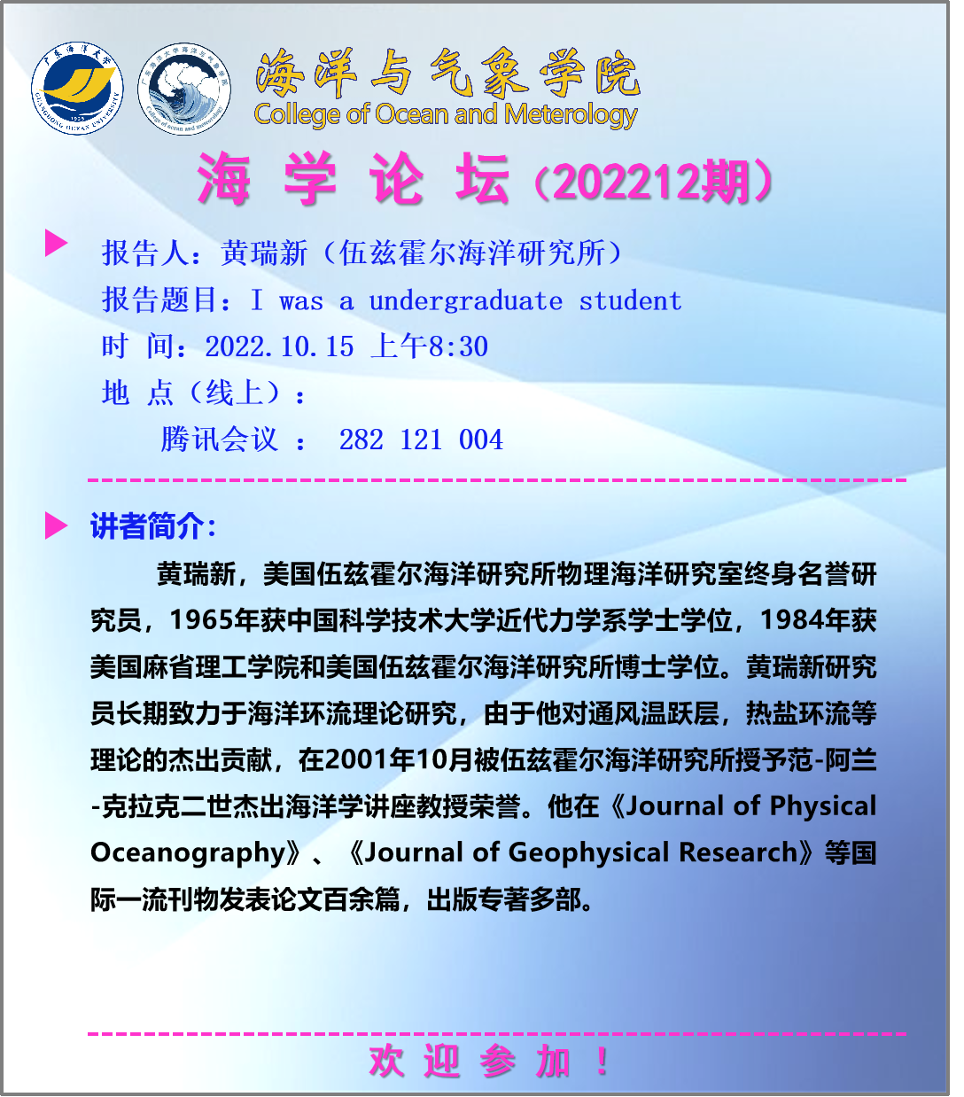 【学术会议通知】海学论坛 2022 12期