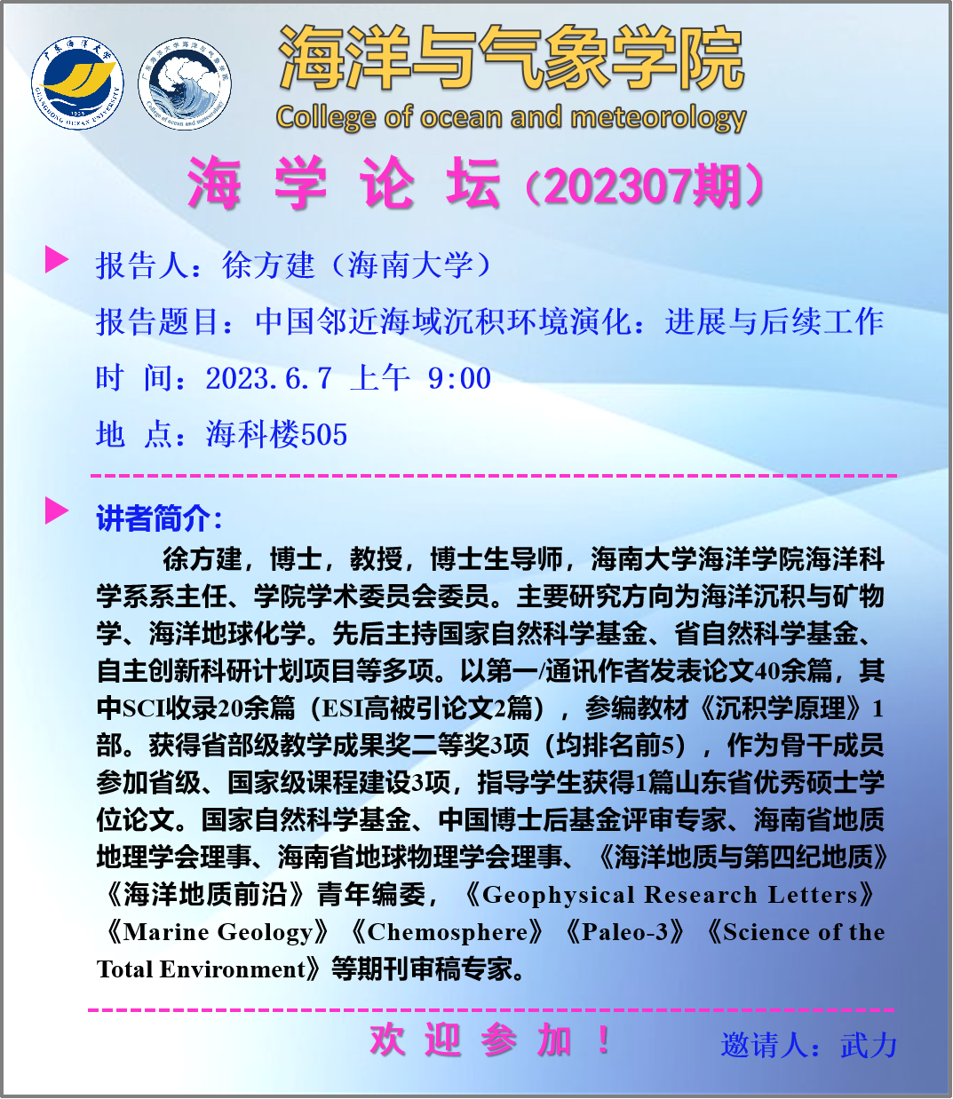 【学术会议通知】海学论坛 2023 06期