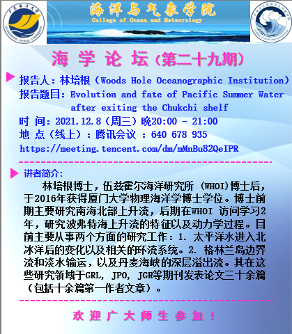 【学术会议通知】海学论坛(二十九期)