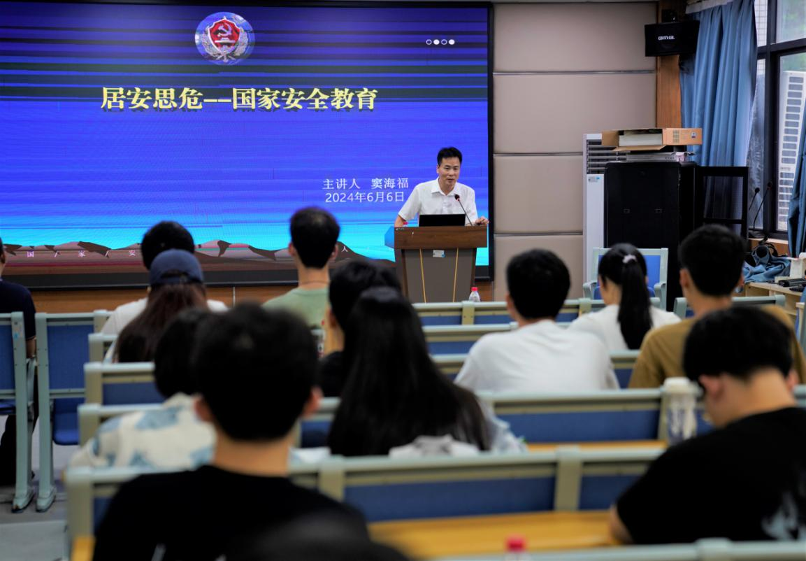 举行了2024年第三期海气问道,本次海气问道邀请到湛江市国家安全人民防线建设领导小组办公室窦老师在海科楼107会议室为大家带来题为“居安思危—国家安全教育”的专题讲座,来自学院相关老师、本科生等60多人线下参加了讲座。